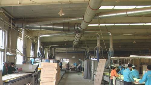 生產(chǎn)中產(chǎn)生的粉塵被吸塵風(fēng)管管收集后,經(jīng)調(diào)節(jié)碟閥、進(jìn)風(fēng)管進(jìn)入木工除塵器,粉塵被阻留在濾袋外,干凈的氣體經(jīng)濾袋、引風(fēng)機(jī)、煙囪達(dá)標(biāo)排放至大氣。家具廠除塵器收集的粉塵埋刮板輸灰機(jī)輸送至料倉(cāng),通過(guò)料倉(cāng)卸料口經(jīng)鋸末壓塊機(jī)自動(dòng)壓塊。